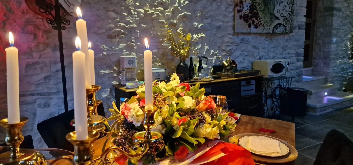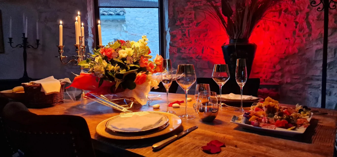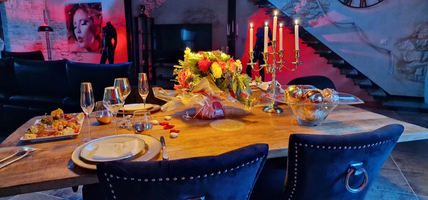 Aux feux de vrais bougeoirs, vous partagez un très joli moment d’évasion culinaire fait de saveurs subtiles. Vaisselle, couverts, décoration de table, service… Tout est en harmonie pour que votre soirée vous laisse d’impérissables souvenirs. Si la table est dressée comme pour fêter un grand jour, le dress code est lui aussi en harmonie avec l’exigence sexy et romantique du moment.