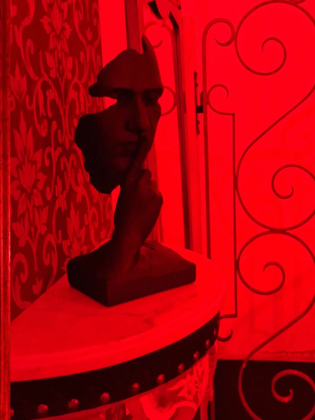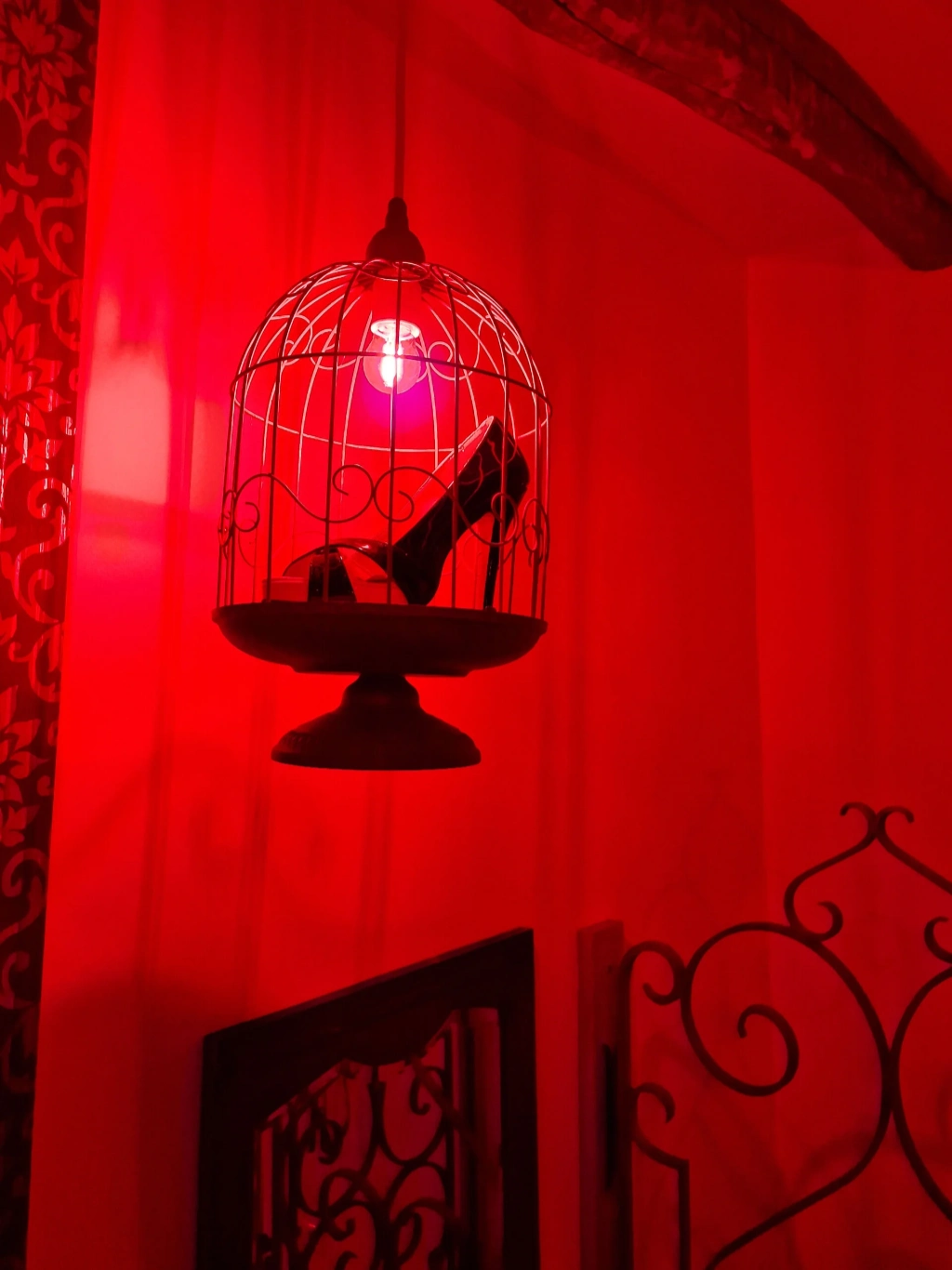 Cette pièce est privative, elle est à l’intérieur de votre suite. Un mini Escape Game vous permet de trouver le code pour entrer dans cette pièce secrète. Elle est super équipée avec du matériel haut de gamme. Ce lieu de fantasmes très chic restera secret.